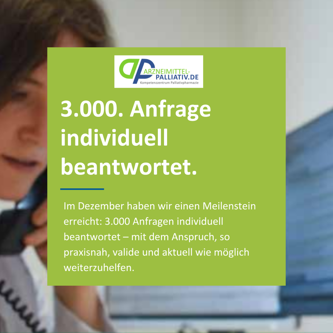Wir sind stolz, mit unserem Angebot die häufig komplexe Arzneimitteltherapie in der Palliativversorgung zu unterstützen – und so zu einer bestmöglichen Versorgung von Patientinnen und Patienten beizutragen.
